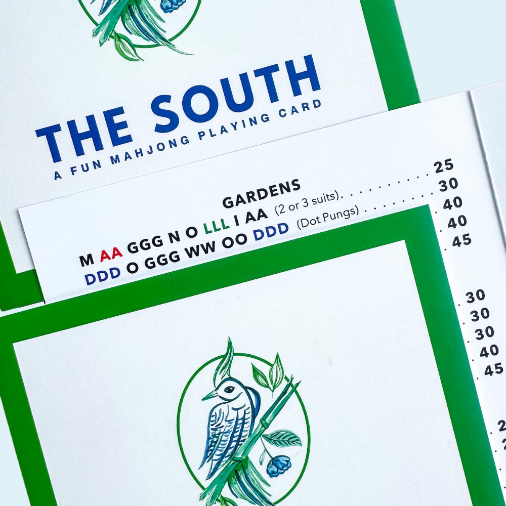 Love mahjong and The South? We do too. Try our brand-new card featuring all the things you like about the South! Sold in sets of four so your whole group has what they need to play.
